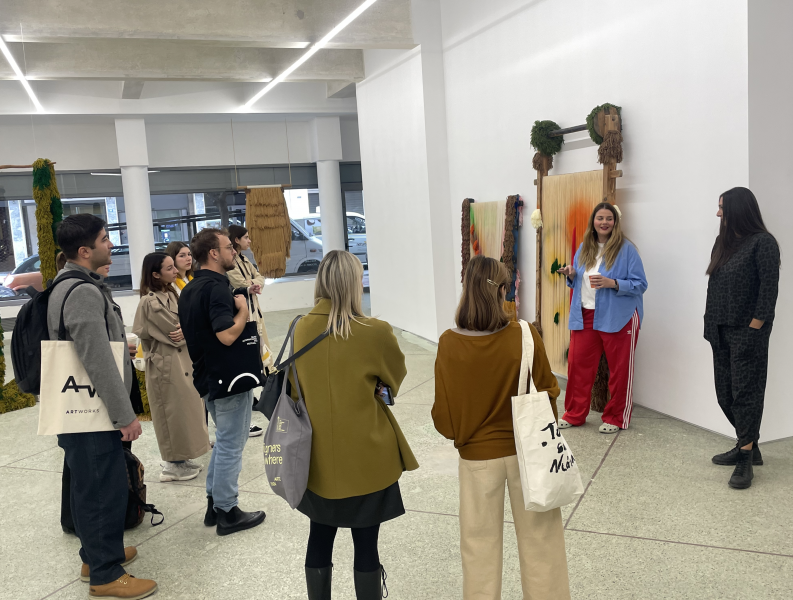 Την Πέμπτη 21 Νοεμβρίου πραγματοποιήθηκε μια ξεχωριστή συνάντηση, όπου η ομάδα της ARTWORKS παρουσίασε το έργο και την αποστολή της στους SNF Interns. Οι SNF Interns είχαν επίσης την ευκαιρία να επισκεφθούν χώρους τέχνης που αναδεικνύουν τη δυναμική της σύγχρονης καλλιτεχνικής σκηνής της Αθήνας. Συγκεκριμένα, περιηγήθηκαν στην Can Gallery και την ατομική έκθεση της Μάρως Φασουλή (SNF ARTWORKS Fellow 2020) “A House as Big as You Need and Land as Far as You can See” και στη συνέχεια, επισκέφθηκαν το Kyan Project Space, έναν ανεξάρτητο χώρο που λειτουργεί ως σημείο συνάντησης για καλλιτέχνες και κοινό, φιλοξενώντας πειραματικές εκθέσεις και δράσεις. Κατά τη διάρκεια της επίσκεψης στο Kyan, οι καλλιτέχνες Κυβέλη Ζώη (SNF ARTWORKS Fellow 2021), Julien Saudubray, Tefra και Michael Fanta, παρουσίασουν το έργο τους και μοιράστηκαν σκέψεις γύρω από τη δημιουργική διαδικασία.