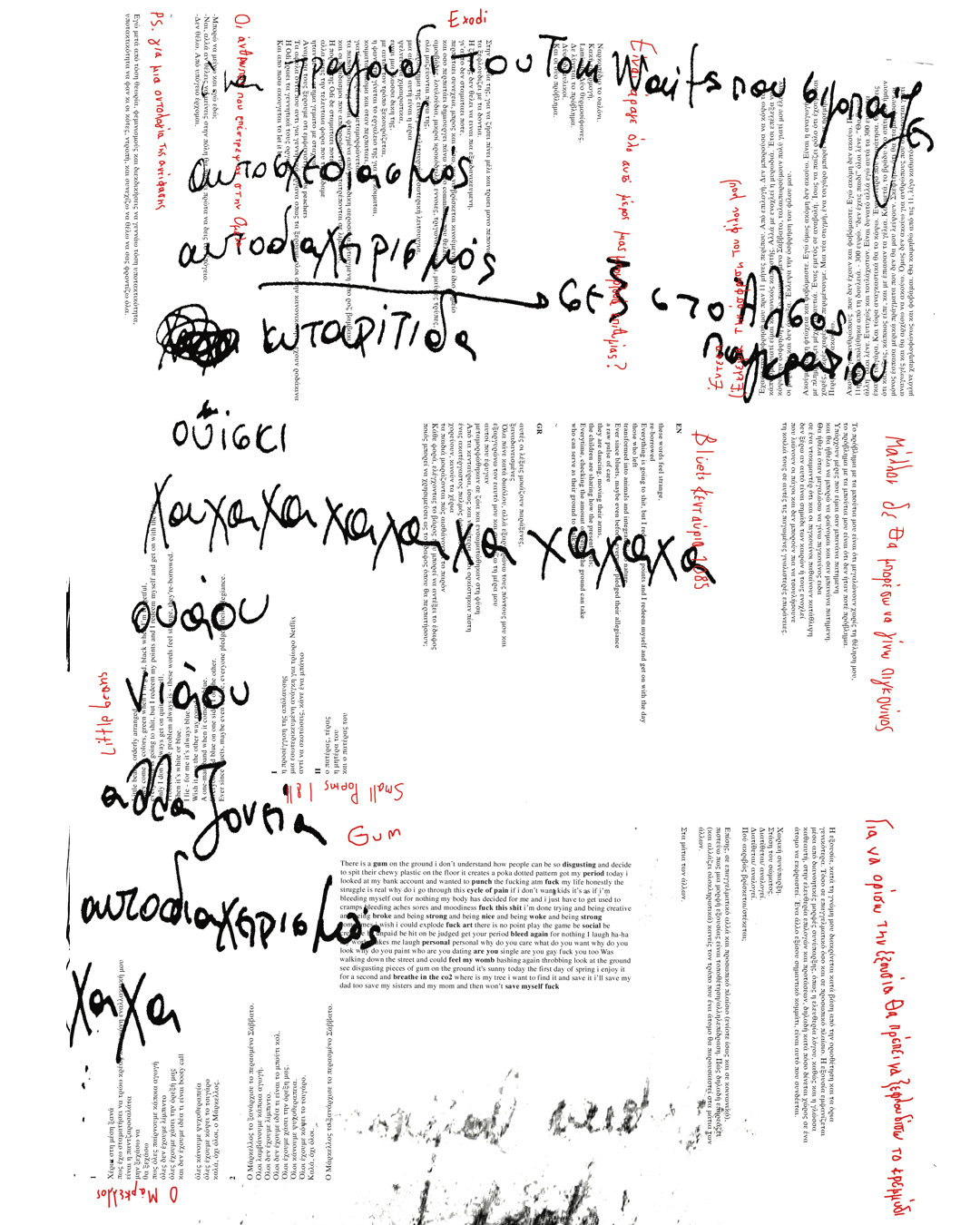 Ioanna Gerakidi is a writer, curator and educator based in Athens. Her research interests think through the subjects of language and disorder, drawing on feminist, educational and anti-colonial studies. Poetry and other diaristic and archival schemes are often embedded in her practice.