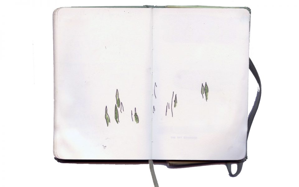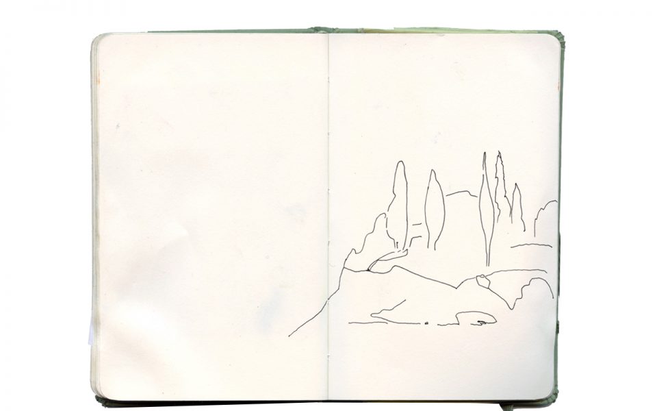 Τοπίο και αντικείμενα του σπιτιού γίνονται η αφορμή για σκίτσα στο σημειωματάριο.