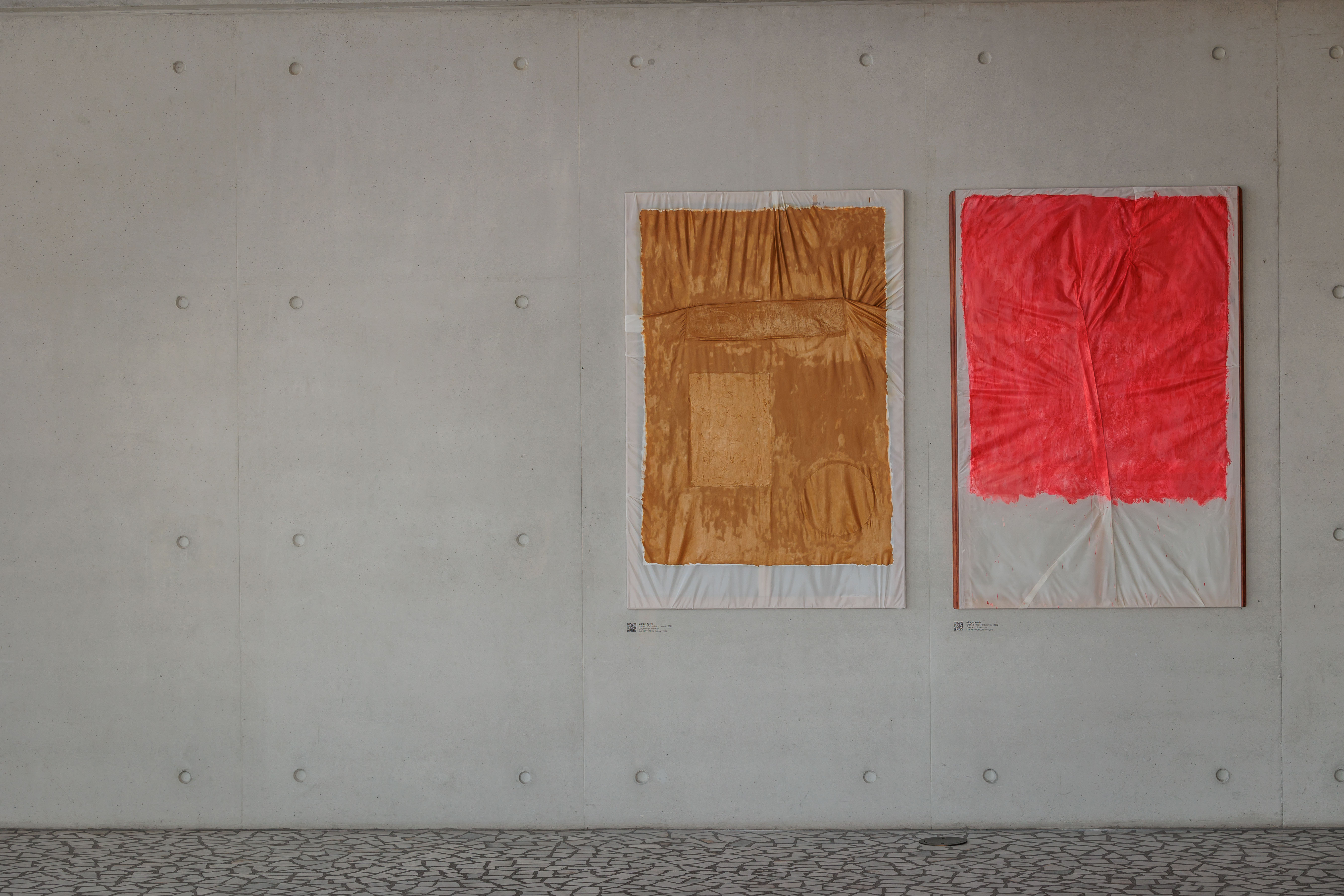 Γιώργος Κόντης, Untitled (Ochre, Folds series), 2021 & Untitled (Red, Folds series), 2020. Φωτογραφία © Zακ Βιεμόν