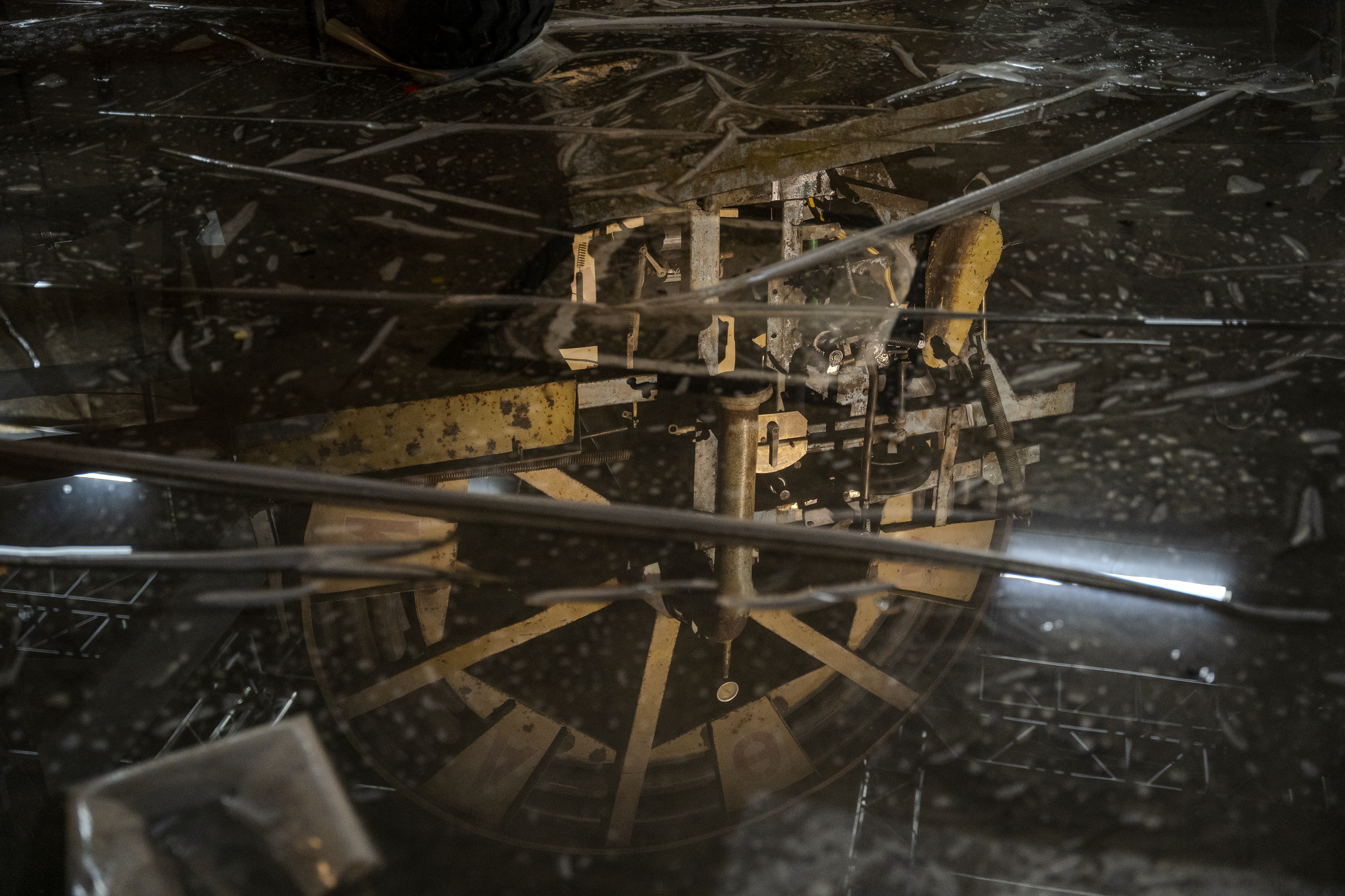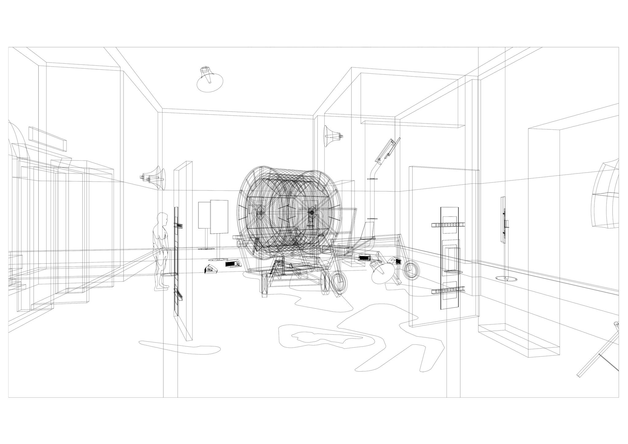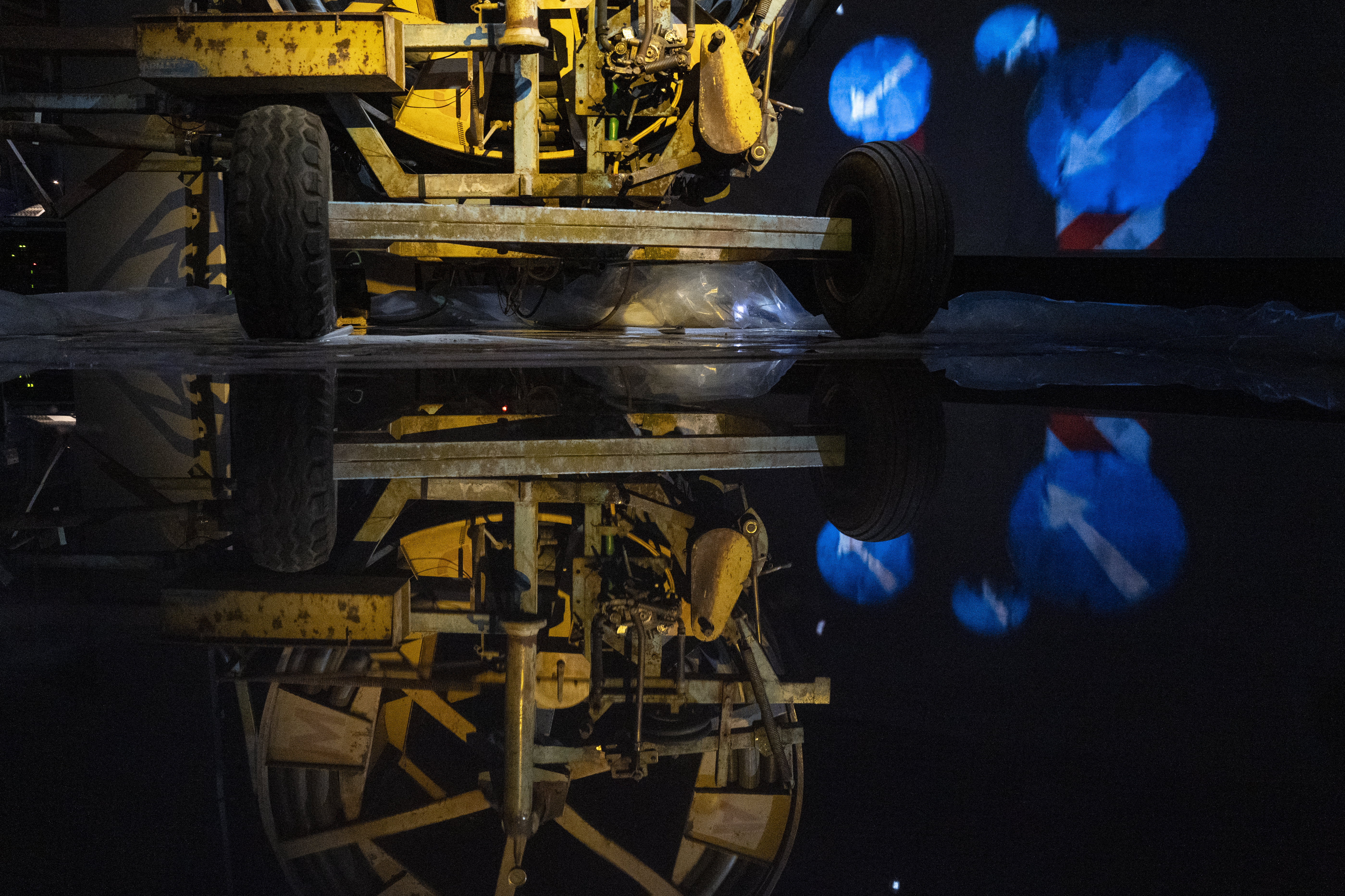 Αυτή η αδιάκοπη αλληλεπίδραση μεταξύ «παράστασης» και πραγματικότητας μεταφέρεται στο έργο. Το Ξηρόμερο/Dryland αξιοποιεί τα αρχιτεκτονικά χαρακτηριστικά του ελληνικού περιπτέρου για να αναδείξει συσχετίσεις με τις γεωργικές αποθήκες και τη θρησκευτική αρχιτεκτονική που αποτελούν συνήθως το φόντο των πανηγυριών. Επιπλέον, το ποτιστικό που βρίσκεται στο κέντρο του περιπτέρου, ορίζει κυκλικά το περιβάλλον της εγκατάστασης. Το έργο μεταφέρει επίσης τον χώρο συνάντησης της κοινότητας -την πλατεία, τη δημόσια συγκέντρωση- από το εξωτερικό στο εσωτερικό. Καθώς το σύστημα ποτίσματος τίθεται σε κίνηση, δημιουργεί έναν ρυθμό, οριοθετεί τον χρόνο όπως ένα ρολόι ή μια κασέτα που ξετυλίγεται, παρακινώντας τα σώματα των επισκεπτών να ακολουθήσουν διαδρομές και να αλλάξουν τρόπους θέασης. Το Ξηρόμερο/Dryland αποφεύγει μια αισθητική προσέγγιση και τονίζει τη συναισθηματική αμεσότητα της επαφής με αντικείμενα, ήχους και εικόνες.
