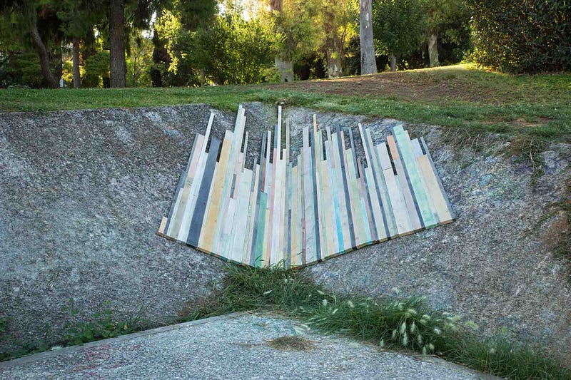 Athens is in no position to boast over its contemporary public artworks. Οnly a handful among them are noteworthy. As far as contemporary monuments are concerned, I would distinguish Dimitris Pikioni’s intervention at the Filopappou Hill. Furthermore, DeAnna Magania’s Holocaust Memorial on Ermou street is a sound and complete proposal, and one of the few contemporary monuments that truly worthy of attention. Every time I walk by the Rizari Park I am happy to be stepping on David Harding’s Desire Lines, a path carved by the artist in 2017 as part of documenta 14, with references to Beckett and the uprooted populations of the world. The work’s title provides an excellent account both of our relationship with the city’s public art and of the way in which we connect with the monuments and artworks displayed in the public space. This connection, as I understand it, cannot but be of a personal nature.