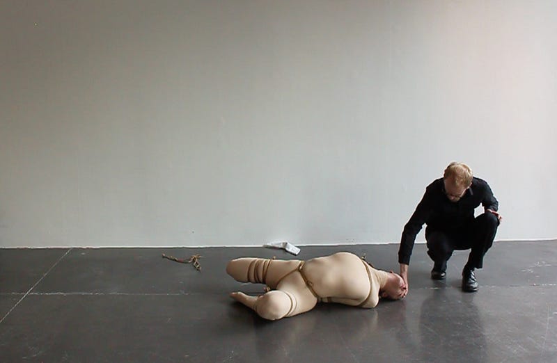 Following from violence’s definition as any force exercised among bodies at the moment of their encounter, with its effect having a severe impact on the bodies upon which it is applied, the works of violence brought forward could be distinguished into two categories: (a) performances in which violence takes place at a time prior to the performer’s appearance in front of an audience, and (b) works in which violence takes place during the ‘actual’ performance, either live or in a video format reproducing an action that has already happened in the past (during a performance piece or within a private consensual environment). In the first category (a), violence is presented either through marks left on the performer’s body as a trace/remainder, e.g.: bruises, imprints, and/or abrasions, or is implied through rituals of care that would constitute the ‘actual’ performance work, called upon to manage violence’s traumatic remainder.