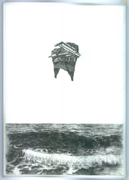 Going beyond Kyriaki’s internal processes, we discuss how these complex tangles of emotions and research find concrete expression. Take a recent project, Networks of Trust, motivated by an opposition to how world’s largest corporations (Facebook, Google, et. al) are profiting from our memories and feelings. To explore this vast subject, Kyriaki produced a multi-faceted work, consisting of a media installation, drawings, an audio manifesto, and a trove of digital material that can only be accessed when viewers are in proximity with one of three nodes that make up her alternative “network of trust.” Thus, like a pilgrim from days gone by, Kyriaki asks us to travel to one of the trio of nodes (on Tilos; in her studio in Athens; and a nomadic one which pops up wherever the project is exhibited) to experience the work. Through her demand, the universal ease and convenience promised by today’s start-up culture is confronted with an old-fashioned idea of locality, the topos.