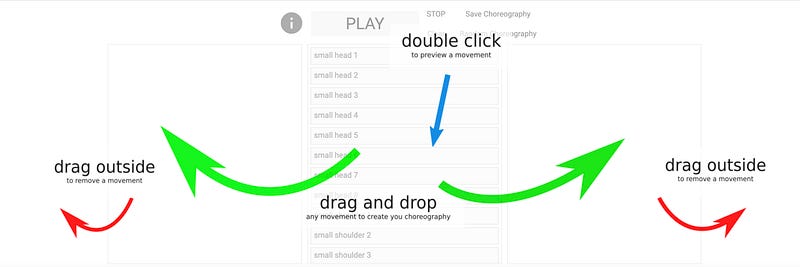 Mytilinaios conceives choreography as a three-column table; the centre column contains the anatomical categorisation of movement, from head to ankle, providing the user with an inventory of bodily articulations which can be dragged and dropped to either left or right columns, re-ordered and processed according to one’s imagination, then pulled outside the column to create a choreographic phrase. However, this elemental three-step (input-sequencing-output) approach to choreography is suggesting more than a simplistic device to play with movement. Abstracting movement and attempting composition with(in) a virtual interface, may remind us that abstraction lies at the heart of choreographic thought and that choreography could also be achieved without real bodies. This is not a statement that could raise another ontological threat to dancing bodies or even express a burning debate about the world becoming increasingly flattened on screens; in fact, many philosophical approaches focused on how technological intervention has undermined or manipulated the subjective experience of body, its cultural representations and significations. Overcoming this fear of losing ‘sight’ of the embodied nature of movement demands that we reframe the very phenomenological approach to dancing, which centres the body as the basis of knowledge and experience. It demands actually to approach thought as the most abstract moment of experience and thus consider choreography as movement-thought.