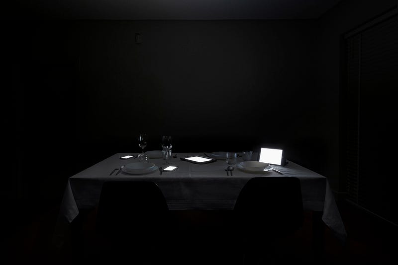 While observing this earlier work of Mavropoulou one would be more than excused to have their mind travel to hauntology and the concept of the eerie developed by Mark Fisher for example. Even more specifically in his “The weird and the eerie” (2016) he points to the circumstances in which to find the rather elusive concept of the eerie, ascribing it to “the failure of presence”. Think of ancient ruins, or a post-apocalyptic landscape to have an image in mind and of the question hidden behind them about the agency, not whether there was one but whether we’ll ever be able to grasp its true force and rationale. Well, in Family Portraits Mavropoulou manages to large extent to make us face this same feeling not about a distant era and long past lives but about our own existence, about the complex forces of capital, technology and human psychology that made those screen take our place in our homes. By extrapolating the light of the screens in absence of their observers, giving them agency and thus turning them into the silent subjects of the images, Family Portraits delivers a bitter-sweet comment on our world in which the relatable environments of our everyday home is no longer only ours and the terrain of a dispute between us and the forces hidden behind the lit screens.