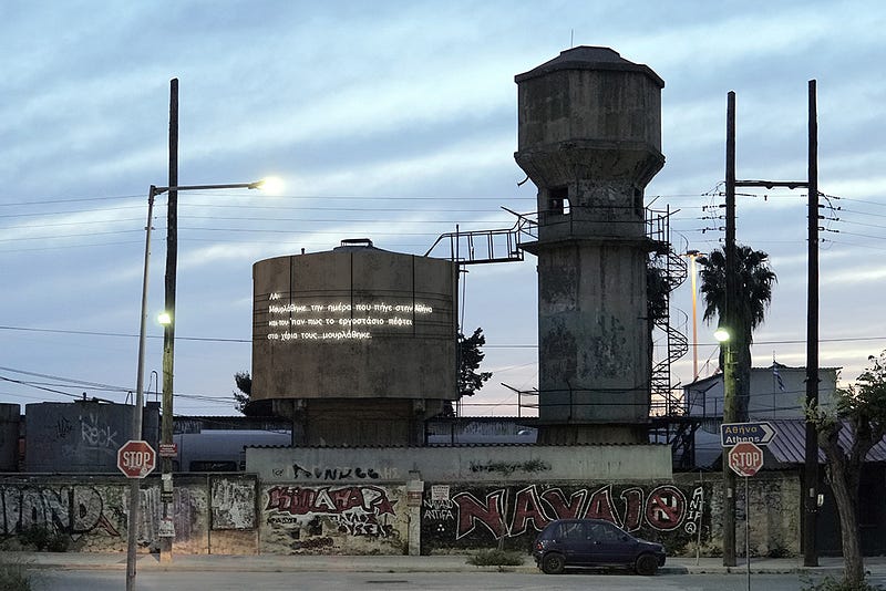 What are those voices behind the isolated post-industrial buildings at the heart of the urban network of Patras? Which is that liberating creative speech that depicts the productive and lively activity?