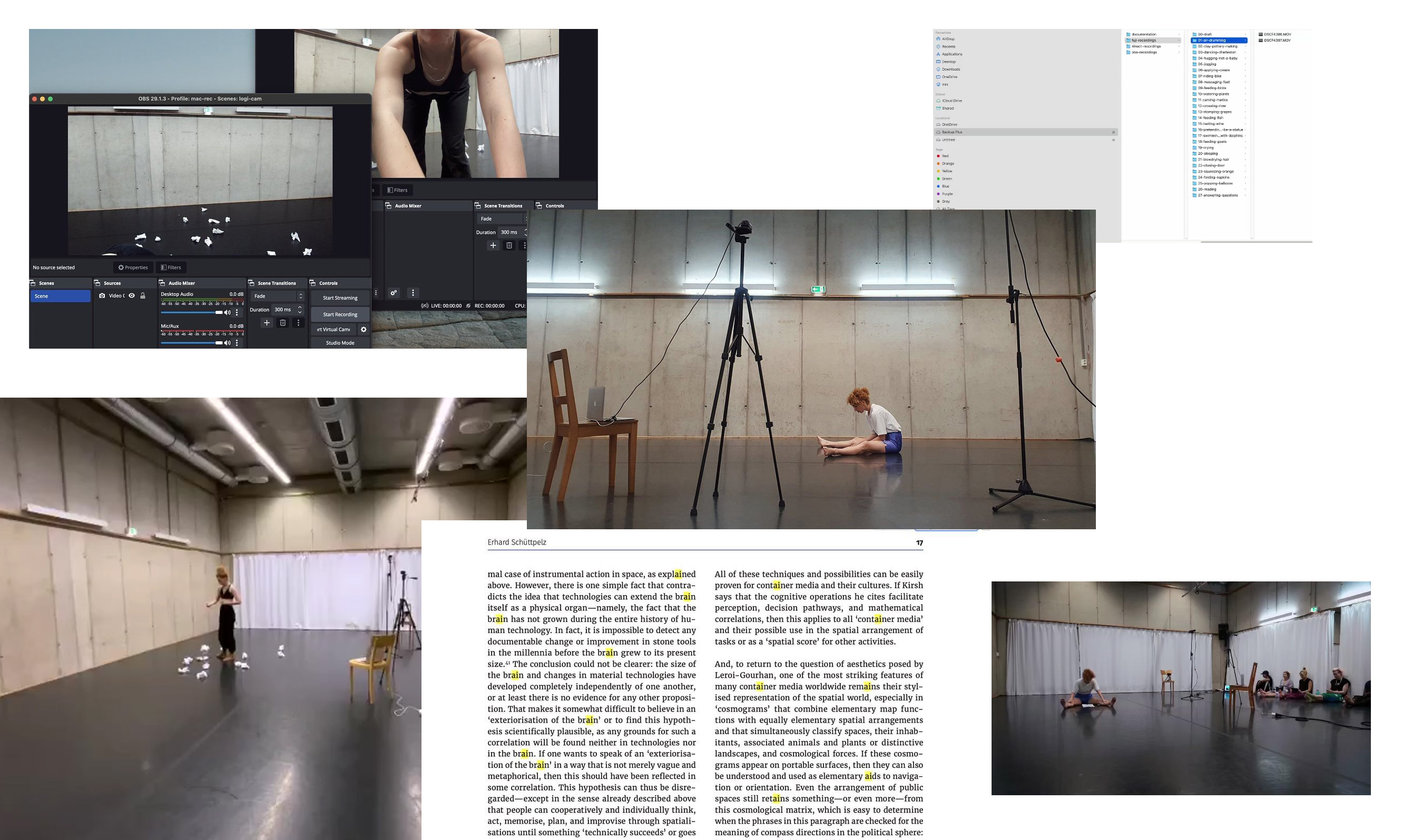 Κατά τη διάρκεια του residency, η Ειρήνη θα συλλέξει δεδομένα χορού για να εκπαιδεύσει ένα μοντέλο τεχνητής νοημοσύνης που θα μπορεί να εντοπίζει και να αναγνωρίζει συγκεκριμένες χορευτικές δράσεις. Τα δεδομένα θα είναι μικροί χοροί λίγων δευτερολέπτων, συνοδευόμενοι από αντίστοιχες ετικέτες ταυτοποίησης, όπως ‘feeding birds’, και η συλλογή τους θα γίνει με διάφορες μεθόδους, υπολογιστικές και μη.